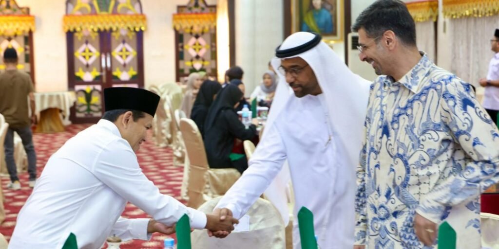 SALINDIA.ID – Banda Aceh, Wakil Gubernur Aceh, Fadhlullah, berbuka puasa bersama Duta Besar Uni Emirat Arab (UEA) untuk Indonesia, Abdulla Salem Al Dhaheri, serta Presiden Direktur Mubadala Energy Indonesia, Abdulla Bu Ali, di Meuligoe Gubernur Aceh, Senin (10/3/2025).