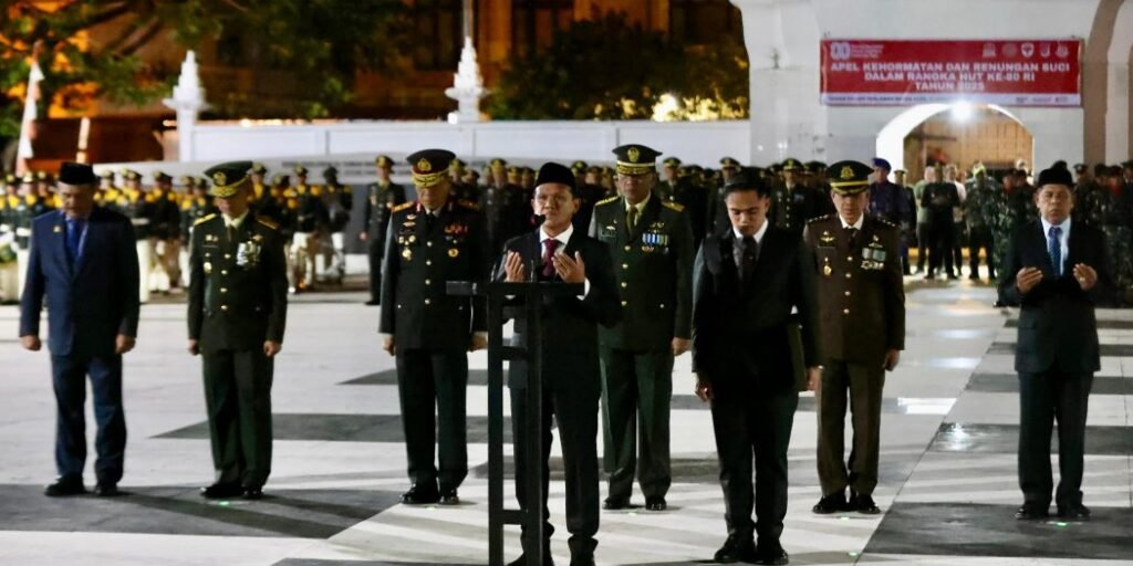 SALINDIA.ID – Banda Aceh, Wakil Gubernur Aceh, Fadhlullah, memimpin Apel Kehormatan dan Renungan Suci (AKRS) dalam rangka memperingati Hari Ulang Tahun (HUT) ke-80 Kemerdekaan Republik Indonesia di Taman Makam Pahlawan Banda Aceh, Minggu (17/8/2025) tepat pukul 00.00 WIB.